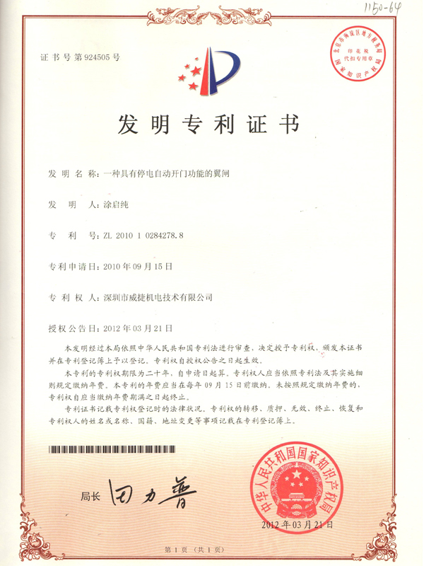 深圳市威捷機(jī)電股份公司,創(chuàng)立于2004年3月,是專注于車行道閘和人行道閘研發(fā)、生產(chǎn)、銷售的高新技術(shù)企業(yè),擁有專利技術(shù)近200項。產(chǎn)品包括商用道閘,高、中、低直流變頻道閘;翼閘、三輥閘、速通閘、平移閘等人行道閘,適用于高速路、商業(yè)廣場、住宅區(qū)、機(jī)場車站等車輛和人員的出入口管理。