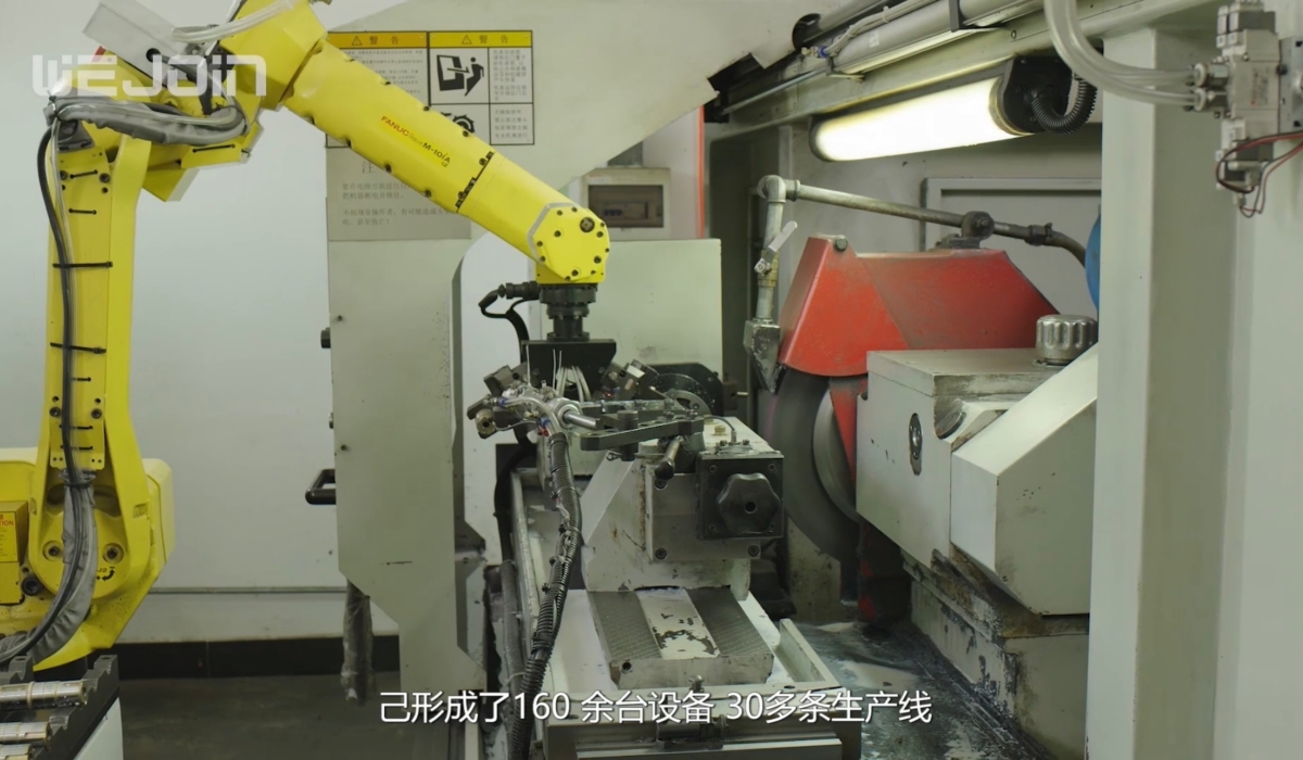 從2017年開始,威捷斥巨資打造智能機(jī)器人生產(chǎn)線,邁進(jìn)智能制造新時代。截止目前,已形成了160 余臺設(shè)備、30多條生產(chǎn)線、年產(chǎn)能30萬臺的規(guī)模。威捷實現(xiàn)了精密壓鑄,減速箱、軸類、曲臂加工,電機(jī)和機(jī)芯組裝,整機(jī)裝配、包裝等工藝流程的自動化,綜合自動化實現(xiàn)率80%以上。威捷道閘90%以上的零配件采用智能機(jī)器人生產(chǎn),使得品質(zhì)一致性、穩(wěn)定性更優(yōu)。